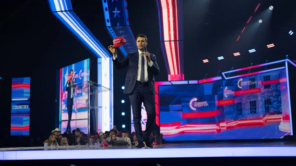Charlie Kirk speaks at Turning Point USA’s AmericaFest in Phoenix in 2024. Photo credit: Cheney Orr/Reuters