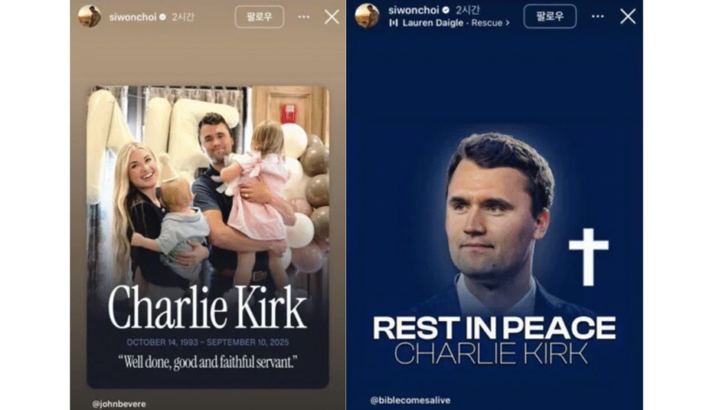 On the fan platform Bubble, Siwon wrote that he wanted to clarify his intentions, saying, “Kirk was a Christian, a father, and a husband. Regardless of political leanings, losing one’s life to gun violence in front of university students is a tragic incident.”